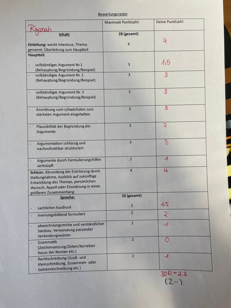 Riyanah K. hat sich auch verbessert in Deutsch. Nun ist sie eine "2er" Schülerin und hat durch die Nachhilfe viel Freude und Motivation bekommen weiter zu machen. Am Anfang sah es noch anders aus mit ihren Noten.