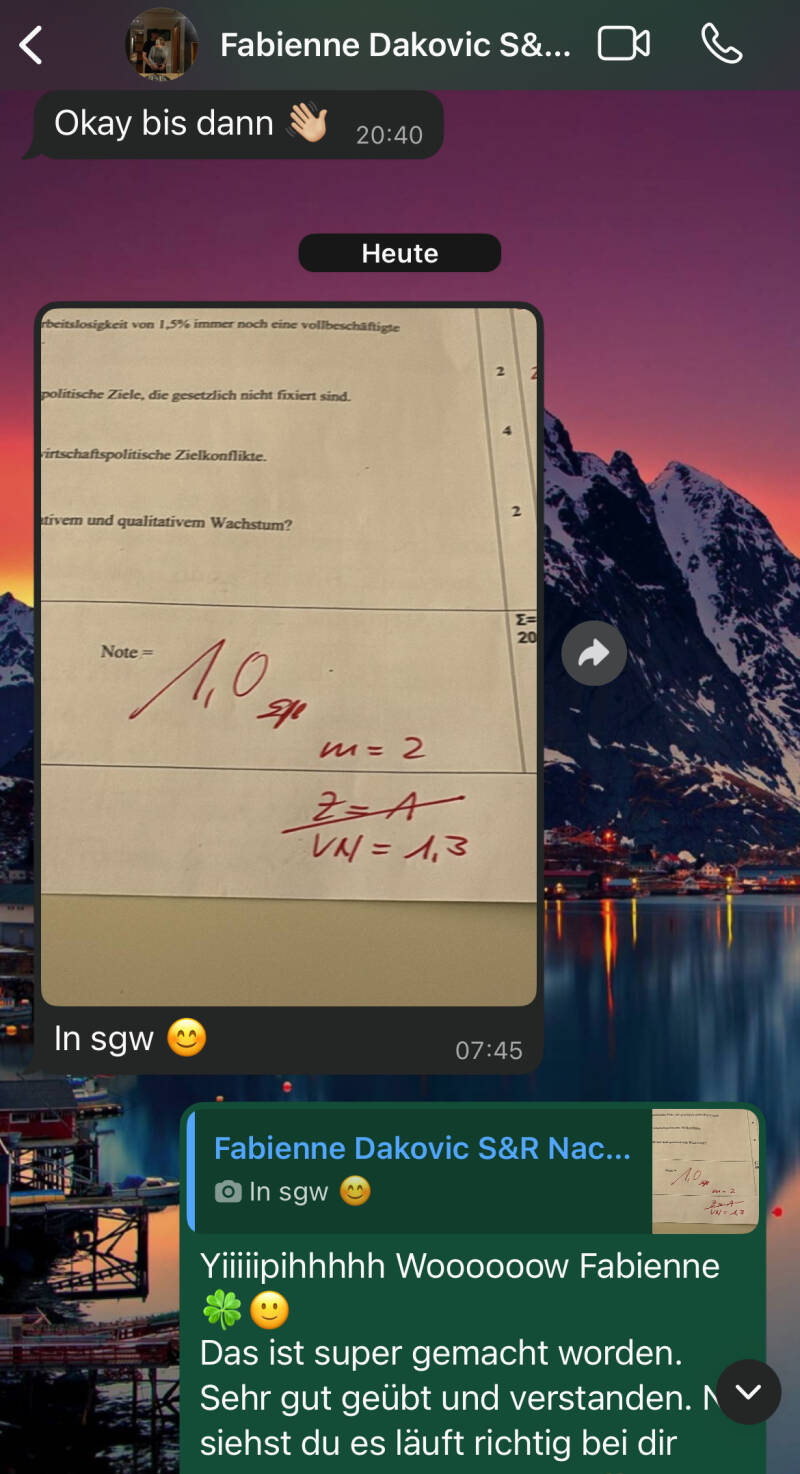 Niclas S. - "Es ist so toll, Saran erklärt alles sehr ausführlich und langsam, sodass man jedes Thema versteht und ich somit eine 2,8 bekommen habe."