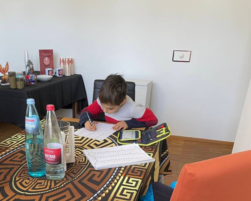 Es folgen Bilder beim Aufbau der Nachhilferäume und das fertige Nachhilfebüro.
